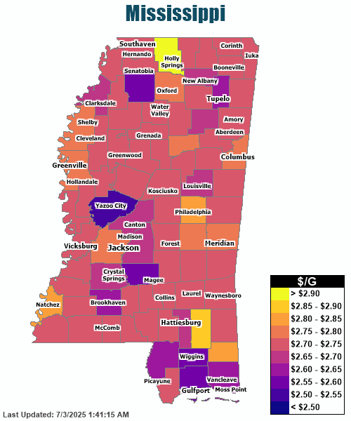 Gas Price Heat Map Mississippi Gas Prices